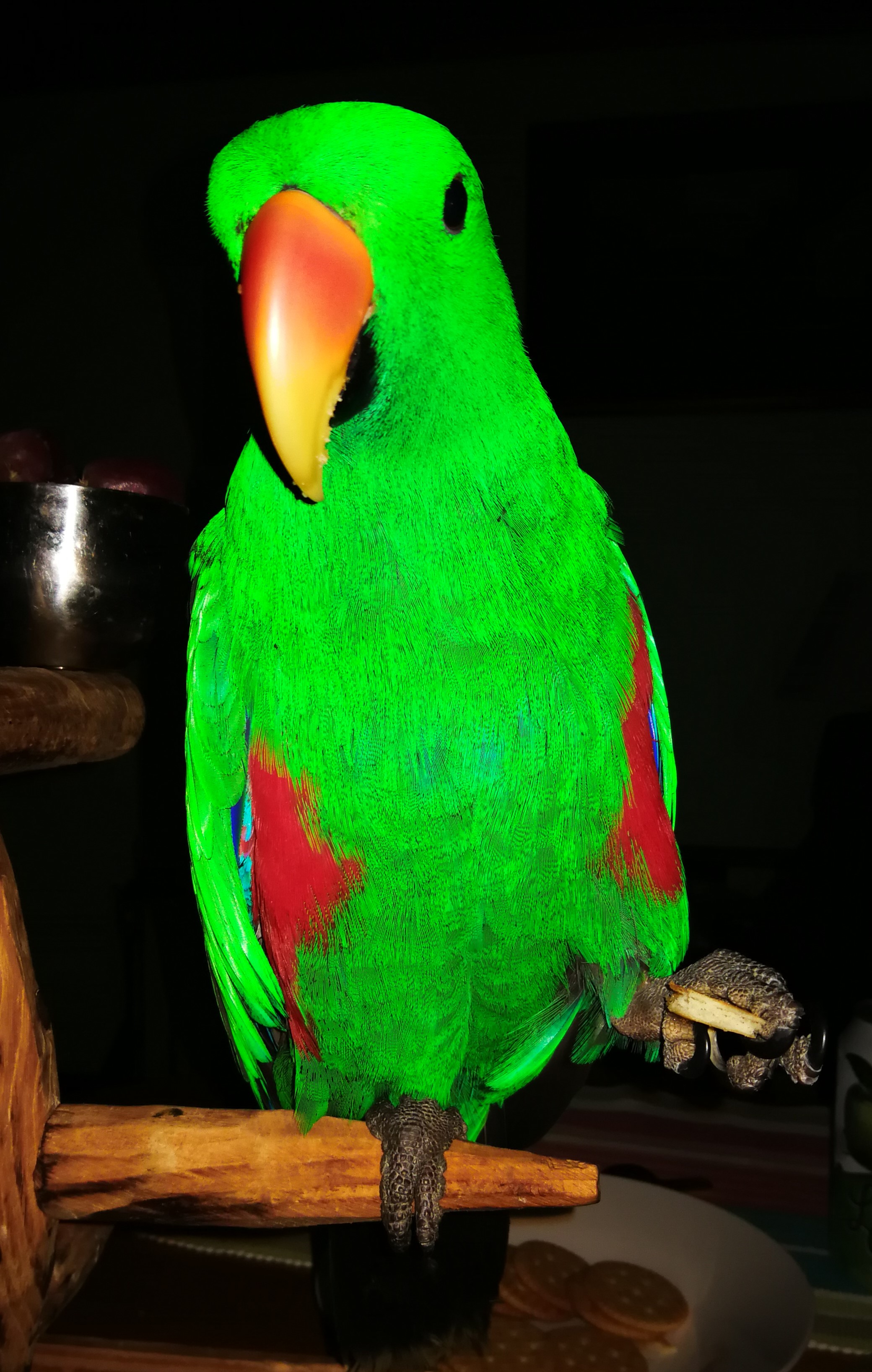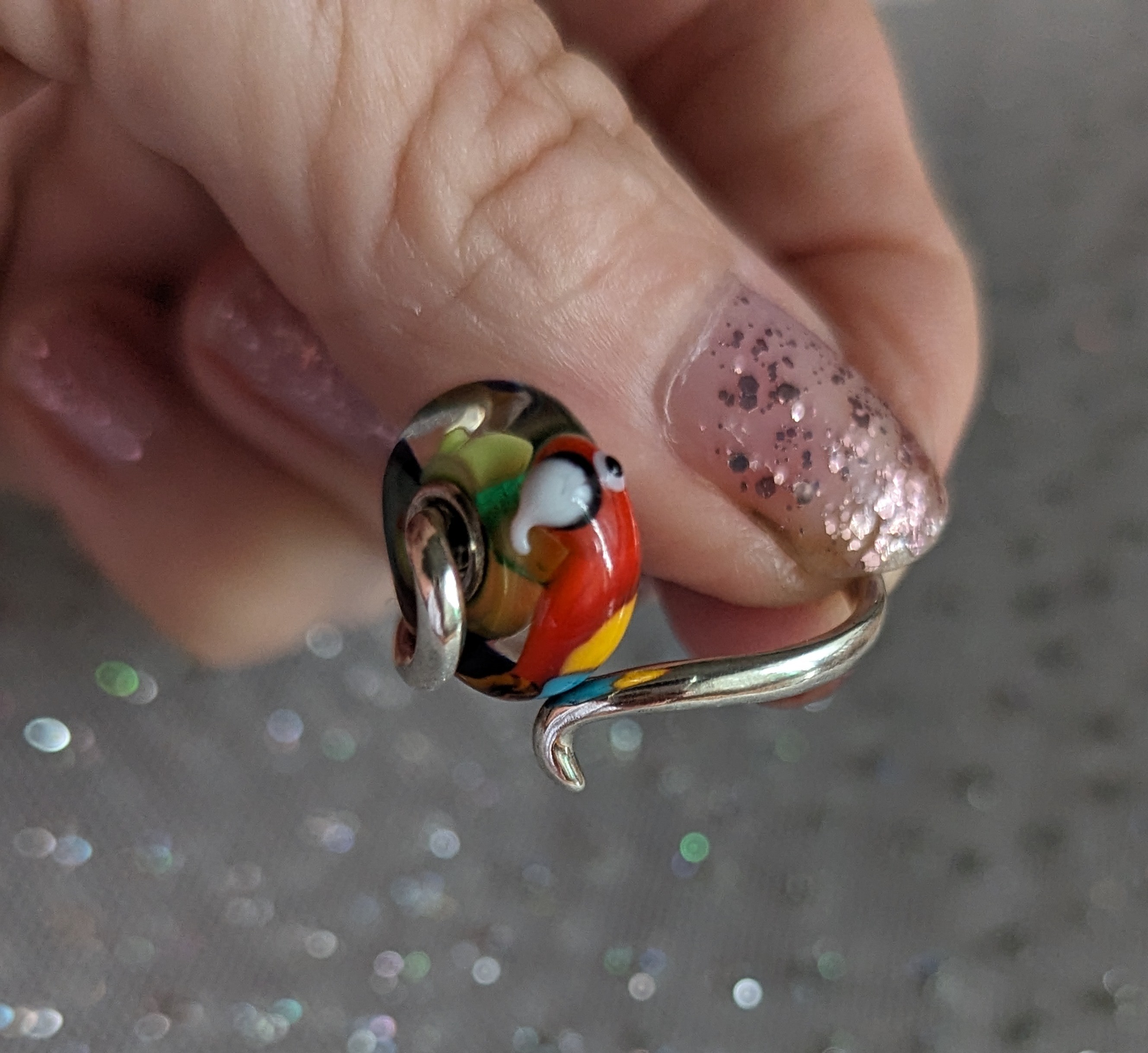 Stunning parrot colours, very well portrayed. He honest injun goes with everything! :#)
