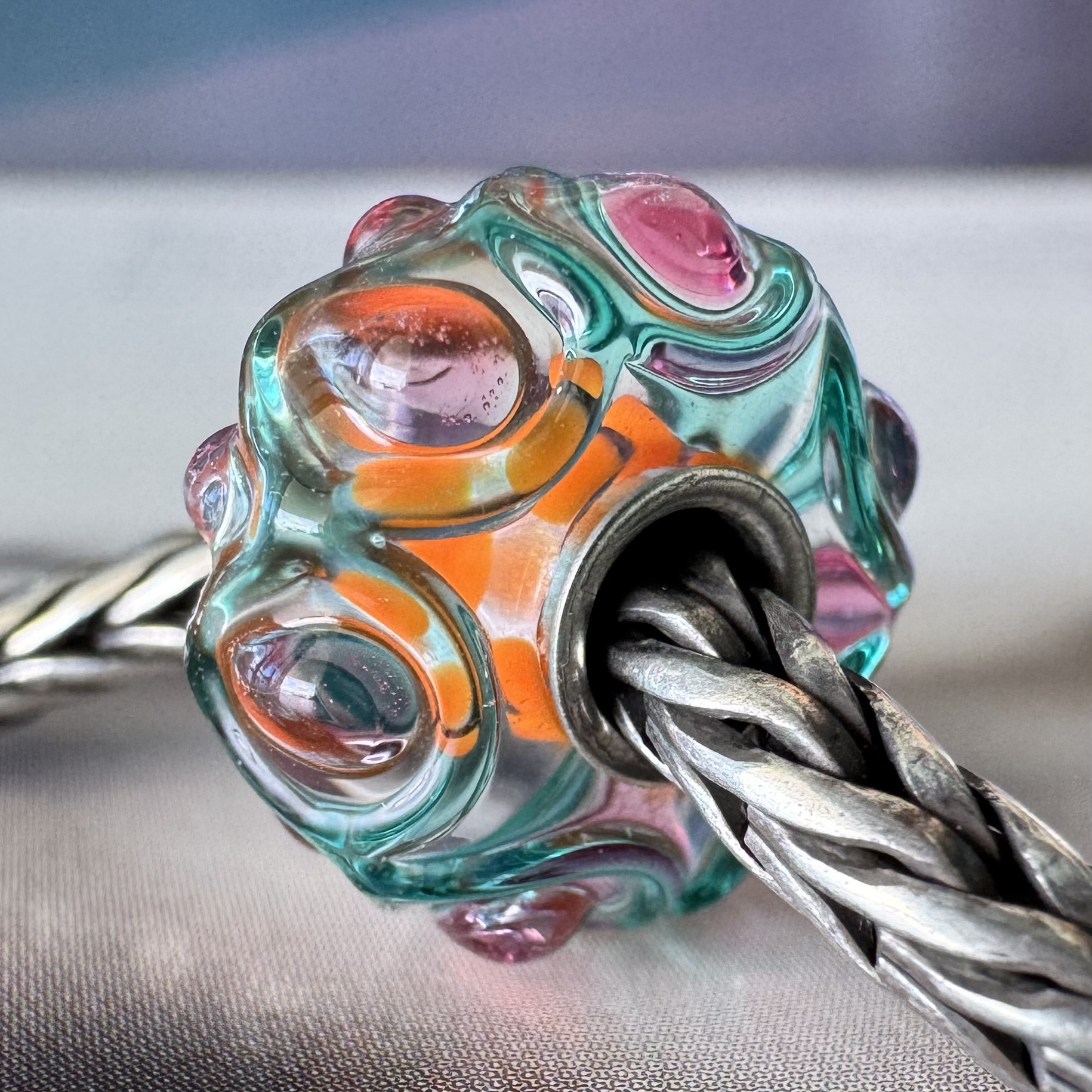 I love being close to nature and am inspired by its beautiful colours and textures. I look for beads with strong colours and designs with symmetry or abstract patterns.